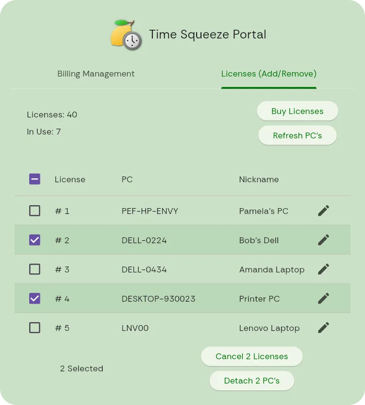 Whether its just for you or for a thousand users, Time Squeeze is equally easy to install or deploy. Our portal lets you manage your organization's licenses/devices and access invoices at any time. Access the portal using the 'Login' button above or by navigating to portal.timesqueeze.net .