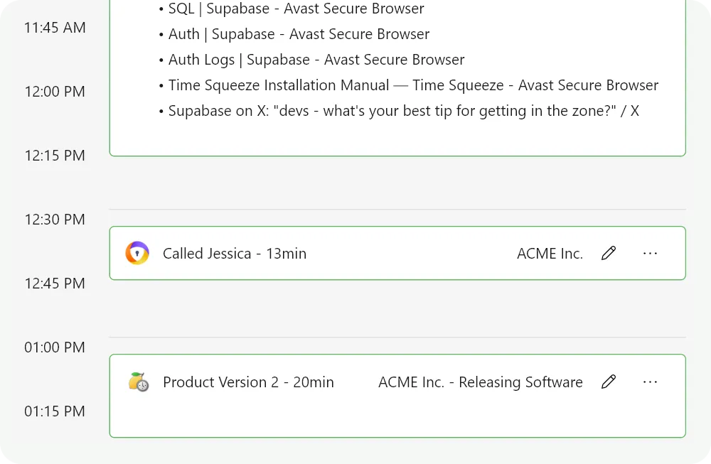 Time Squeeze automatically generates useful efficiency & productivity metrics. Time Squeeze AI intelligently categorizes your activities to provide further insight without compromising your privacy.